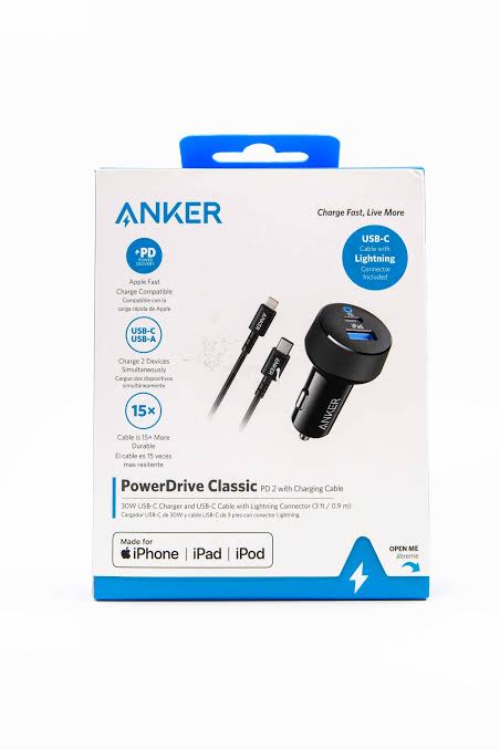استمتع بشحن سريع وآمن في السيارة مع شاحن Anker PowerDrive PD 2. يتميز بمنفذ USB‑C بتقنية Power Delivery بقدرة 18 واط، ومنفذ USB‑A ذكي PowerIQ ينتج 12 واط، لإمكانية شحن جهازين بكفاءة كاملة (بشكل إجمالي يصل إلى 30 واط) تصميمه المدمج يشتمل على حلقة LED خفيفة لتسهيل الاستخدام الليلي ويوفر حماية متعددة للأجهزة من ارتفاع التيار والحرارة. مثالي لشحن الهواتف، التابلت وحتى الأجهزة مثل Nintendo Switch أثناء التنقل.