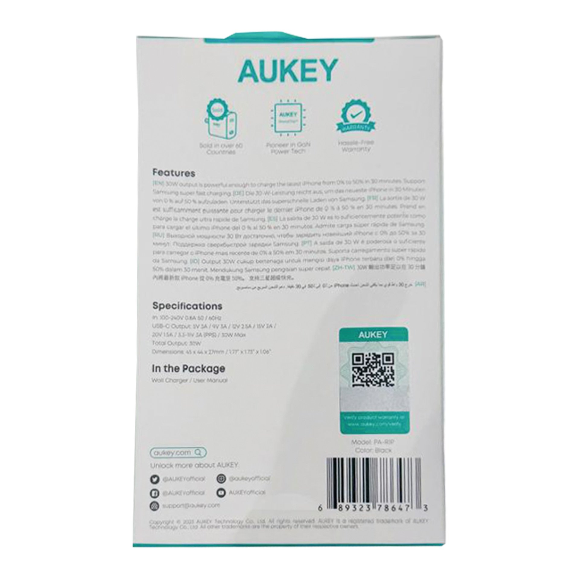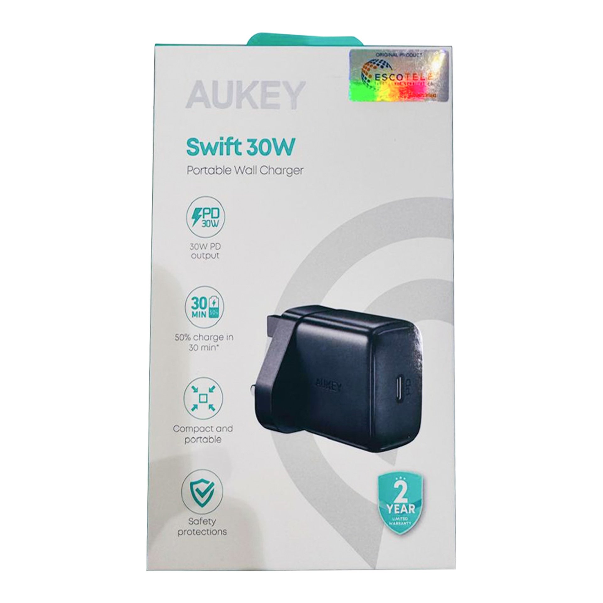 شاحن حائط محمول من AUKEY بتقنية الشحن السريع بقوة 30 واط، تصميم أنيق ومضغوط يناسب الاستخدام اليومي والسفر، يمنحك شحنًا سريعًا وآمنًا لأجهزتك.